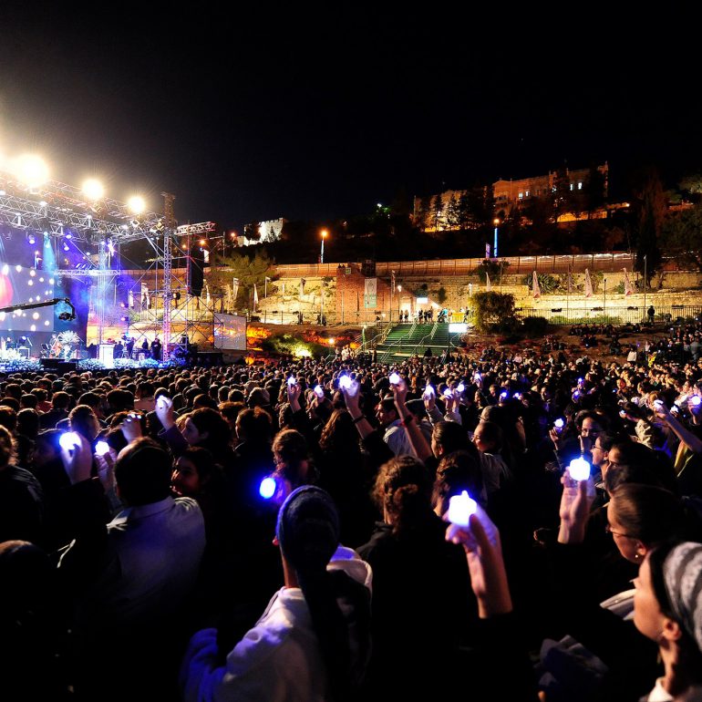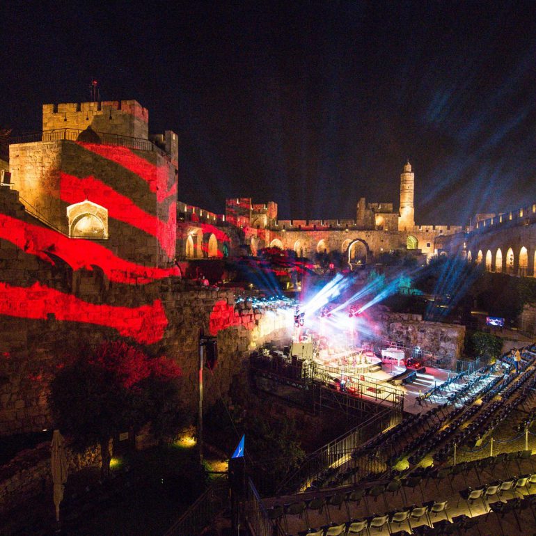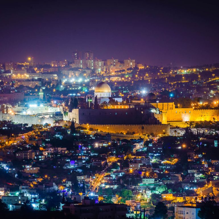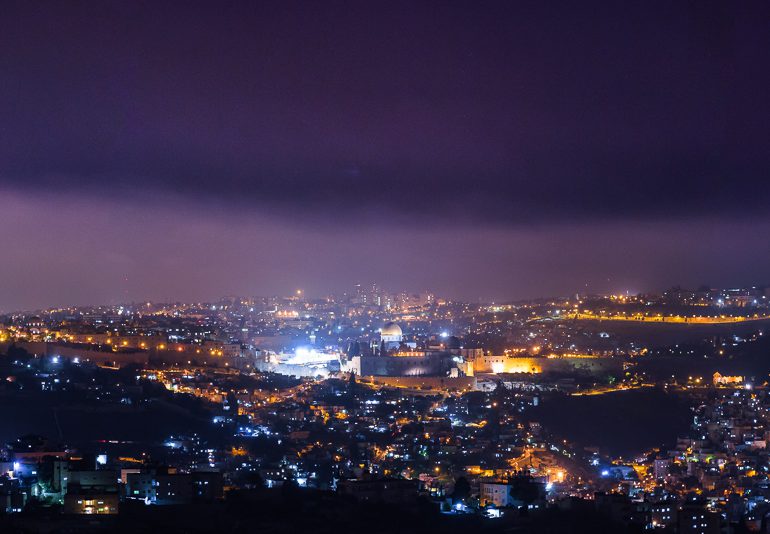חומות העיר העתיקה בירושלים מוארים בלילה