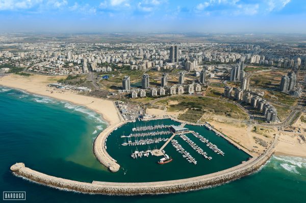 Aerial photo of Ashdod Marina, for commercial use as a downloadable file, or printed on a top-quality photography-paper, and framed in luxurious acrylic-glass for luminous colors and impressive depth effect. The backing is made of light yet sturdy aluminum, for safely hanging on walls.