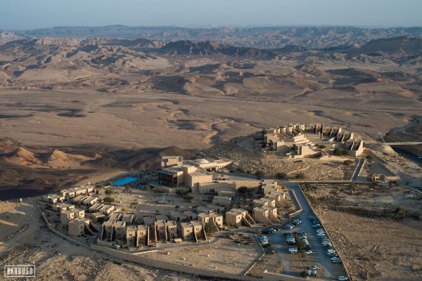 Aerial photo of Be’re’sheet Hotel near Makhtesh Ramon, for commercial use as a downloadable file, or printed on a top-quality photography-paper, and framed in luxurious acrylic-glass for luminous colors and impressive depth effect. The backing is made of light yet sturdy aluminum, for safely hanging on walls.