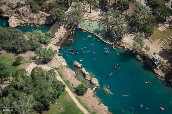 Aerial photo of Gan HaShlosha National Park, for commercial use as a downloadable file, or printed on a top-quality photography-paper, and framed in luxurious acrylic-glass for luminous colors and impressive depth effect. The backing is made of light yet sturdy aluminum, for safely hanging on walls.