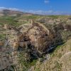Aerial photo of Mar Saba Monastery, for commercial use as a downloadable file, or printed on a top-quality photography-paper, and framed in luxurious acrylic-glass for luminous colors and impressive depth effect. The backing is made of light yet sturdy aluminum, for safely hanging on walls.
