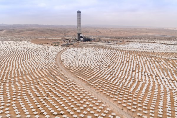 Aerial photo of Eshelim Solar Tower for commercial use as a downloadable file, or printed on a top-quality photography-paper, and framed in luxurious acrylic-glass for luminous colors and impressive depth effect. The backing is made of light yet sturdy aluminum, for safely hanging on walls.
